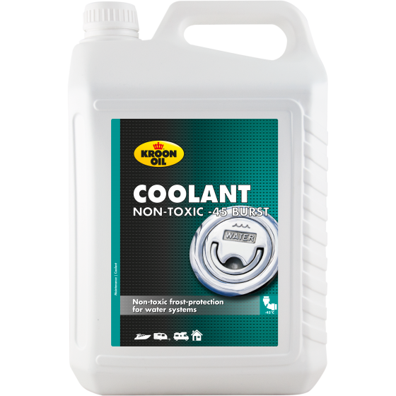 A Coolant Non-Toxic -45 Burst egy különleges, használatra kész folyékony hűtőfolyadék, amely mono-propilénglikolt tartalmaz. Ez a nem mérgező termék biztonságosan alkalmazható ivóvíz- és fűtési rendszerek téli védelmére, beleértve a szabadidős hajók és nyaralók rendszereit is. Környezetbarát fagyvédelem biztosítására is alkalmas vízhűtéses motorhűtő rendszerekben hajók esetében. Biztosítja a -45°C-ig terjedő fagyás elleni védelmet.
